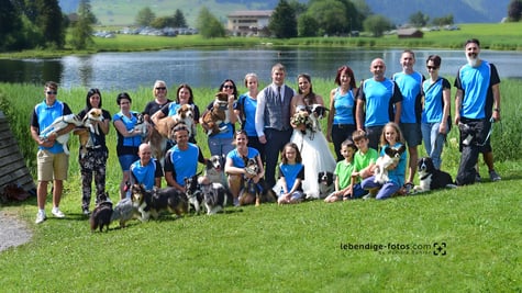 Large: Tanja mit Phoenix und Lycan, Anita mit Kuba, Michael mit Hicks, Marion mit Rémy und Marianne mit Boon